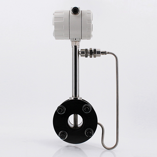 2、温度补偿一体型涡街流量计还带有温度传感器,可以直接测量出饱和蒸汽的温度并计算出压力,从而显示饱和蒸汽的质量流量。